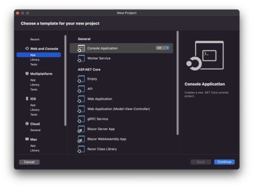 Visual Studio 2022 for Mac プレビューNew - Web and Console - App - API実行するとSwaggerが表示されるControllers - Add - New Scaffolding.- API Controller with read / write actions