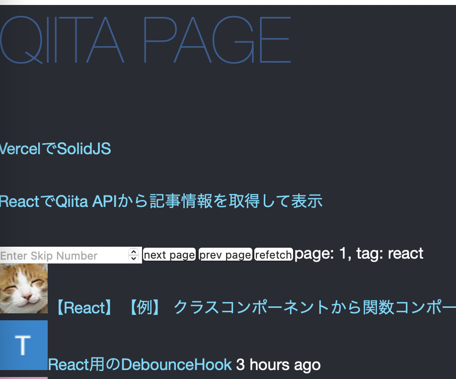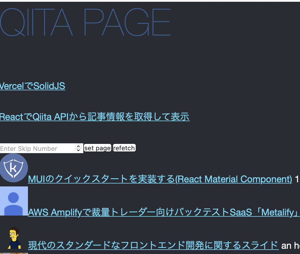 SolidJSでQiitaAPIから記事情報を取得して表示 Vercel